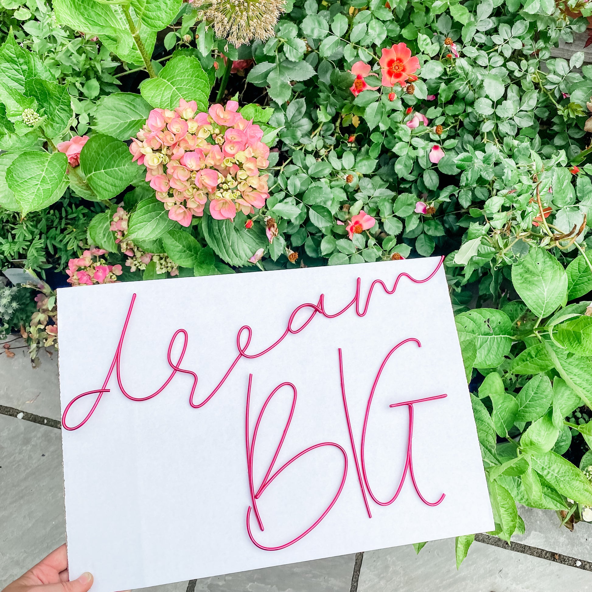 'dream BIG’ - a beautiful sign for your home. Handmade using 3mm aluminium wire and available in a selection of colours.